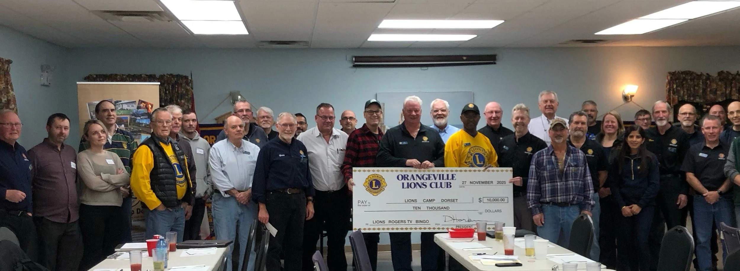 Pictured below are the Orangeville Lions enthusiastically supporting Camp Dorset. In the smaller picture are Lion Don Sinclair (2022-2023 Club President), Lion Tom Zagrodney (Lions Camp Dorset), Lion Frank Grey (2023-2024 Club President), Lion Barry Sinclair (the Clubs Camp Dorset Champion).